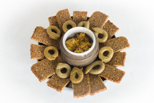 Roast and smoke the nuts in the Big Green Egg. Alternatively, buy smoked almonds, roasted hazelnuts and pine nuts. Grind the nuts by hand (put them in a ziplock bag, cover with an old Tshirt (or any other textile available) and pound them with knife handles/hammers/chopping boards or any other heavy, blunt object. Add nuts and salt to the butter (which should be at room temperature). Mix well. Store in an airtight container until serving. Serve with a good, seedy sourdough, (wild) rye bread or other heirloom grain crackers.
