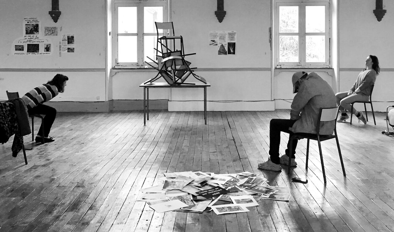 Freeze frames (where the participants create an image using their bodies — without movement) from the prehearsals during The Art of Futuring workshop