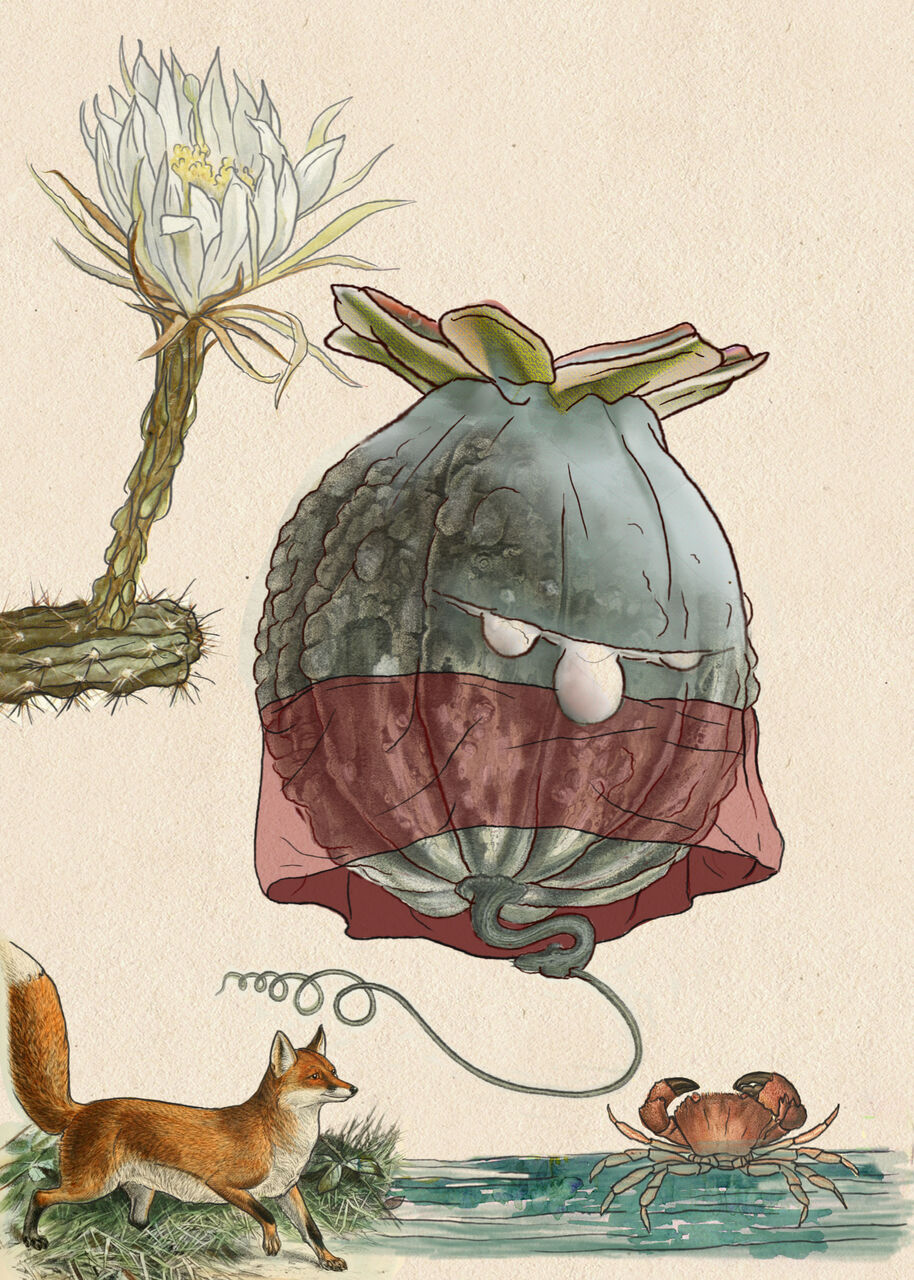 Think of a plant, any plant. Find a particular aspect of the plant that is often overlooked or ignored or exists only in a myth, proverb, or poem. Focus on the overlooked aspect as if it were a critical object of scientific investigation. Imagine you were writing a patabotanical herbarium entry. What would you write? Make sure to use extensively technical jargon. Illustrate the text with patabotanical drawings and diagrams. An example of describing some plants’ capacity to fix nitrogen: “A Nitrogen Fixer absorbs, transforms and releases nitrogen. Nitrogen can be diffused back into the environment, and change the life-giving properties of the soil. This function can increase and decrease the density of the world. It can steer the growth and morphology of plants for generations. Micro-organisms assisting the plants in this function are swarms of organo-robotic creatures, hybrids of the vegetal and the machinic. They are capable of mechanically transforming matter on the scale of atoms and molecules. They influence the biomechanical make-up of soil by digging holes and tunnels. They move as swarms (not unlike insects) with and between the plants underground, and can jump from one plant to another when their roots touch.”