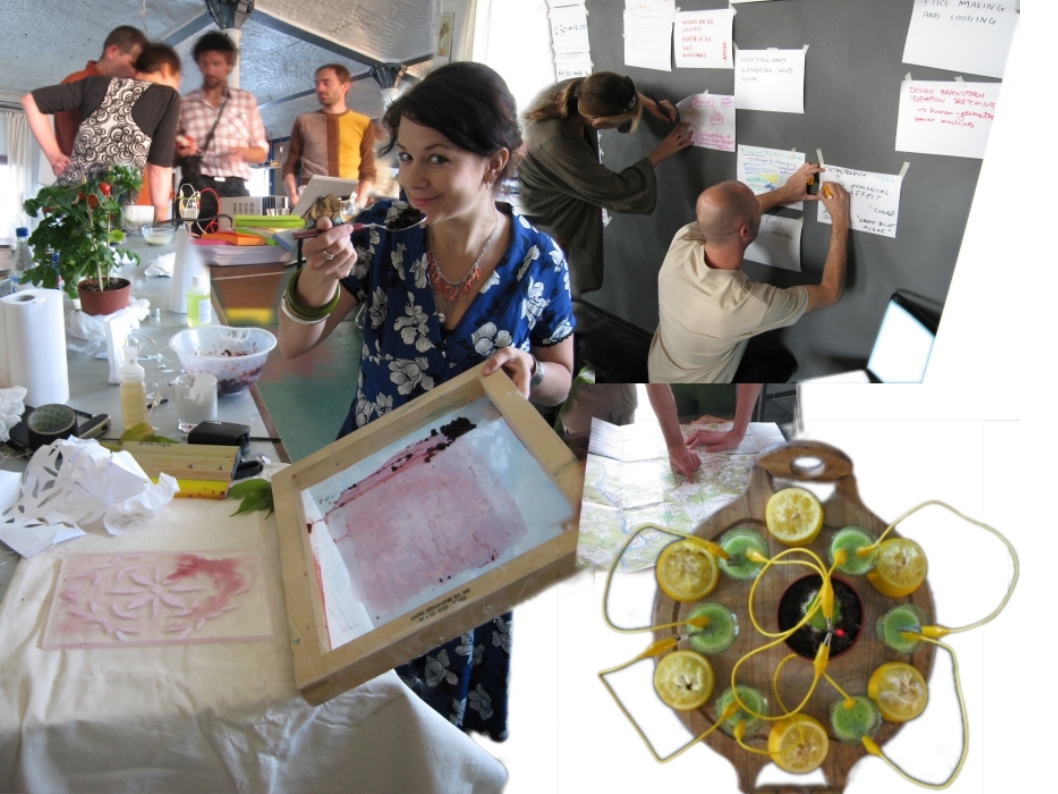 The gathering's social and aesthetic aspects are crucial, helping dissipate tensions and resolve arguments. Luminous Green is a deliberately non-confrontational environment, where dissent and play are encouraged to avoid the traps of groupthink. Sharing meals is as important as sharing ideas. Dancing, doing hand-stands, or offering massages can be interspersed with hands-on tutorials about DIY photovoltaics or theoretical sessions on topics ranging from Carbon Trading to Frugality.