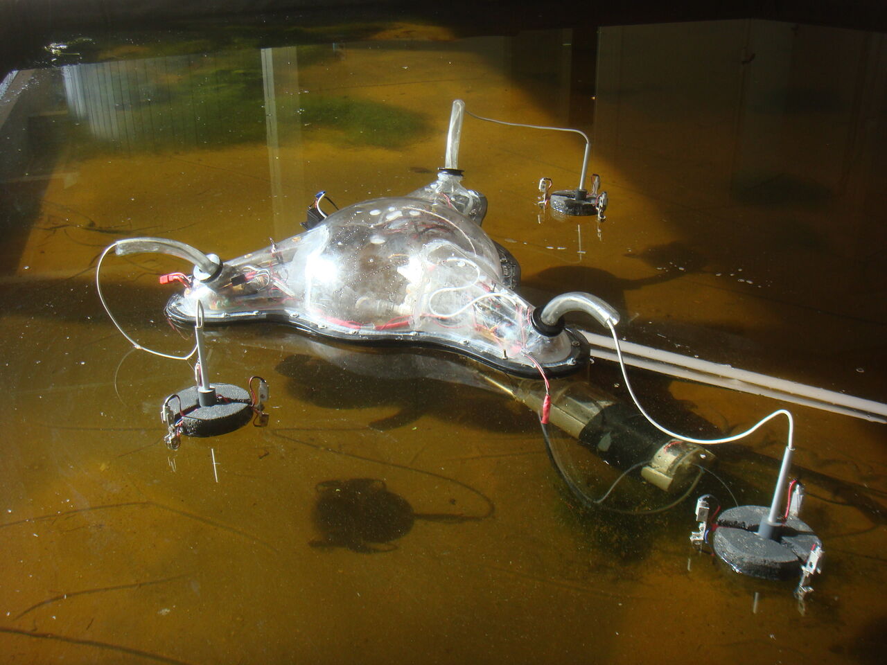 Machines participating in trophic networks: the Symbiotic Machine by long term Machine Wilderness participant Ivan Henriques, ingesting duckweed which it grinds into a photovoltaic layer in its stomach.