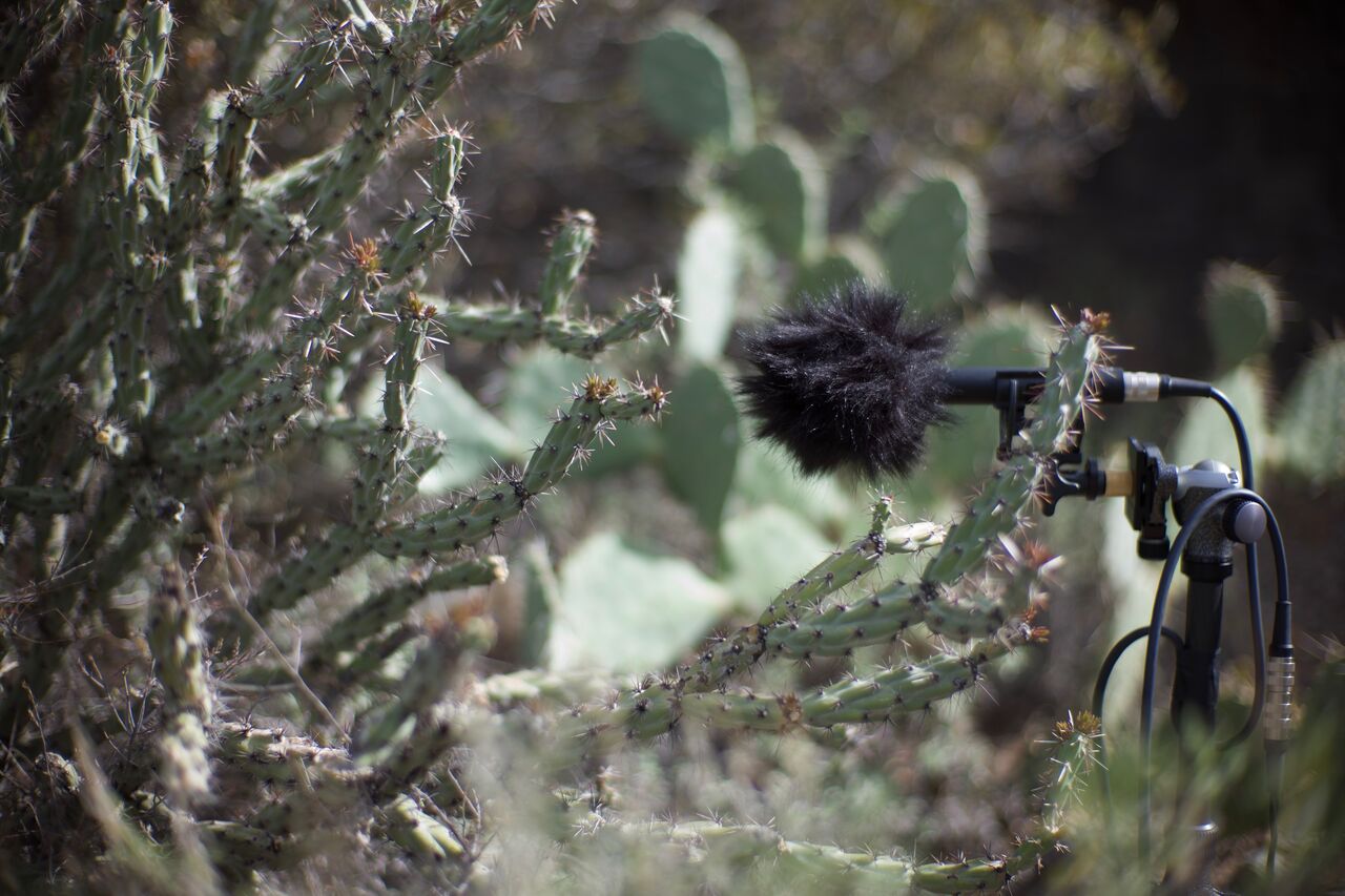 The longer we remained still, the more frequently our neighbours visited. Hummingbirds, lizards, insects, crows, a pack of coyotes, deer, javelina, even a solitary shapeshifter. The nocturnal scuttlings of unseen beasts. The brutal nonchalance of bats eating crickets. A mundane spectacle of the everyday, indifferent to our arrival. Amidst this teeming habitat on the edge of urbanity, we began eavesdropping on the incomprehensible conversations of animate matter. Dust and cacti, trees and insects, concrete and sunlight. What could their voices tell us about the place? What technologies could provide a way of communicating (or communing) within the narrow band of human awareness? What would those technologies look like that could help us attune to our surroundings, rather than distracting us from them? How could we help ourselves listen to the entities we share the planet with?