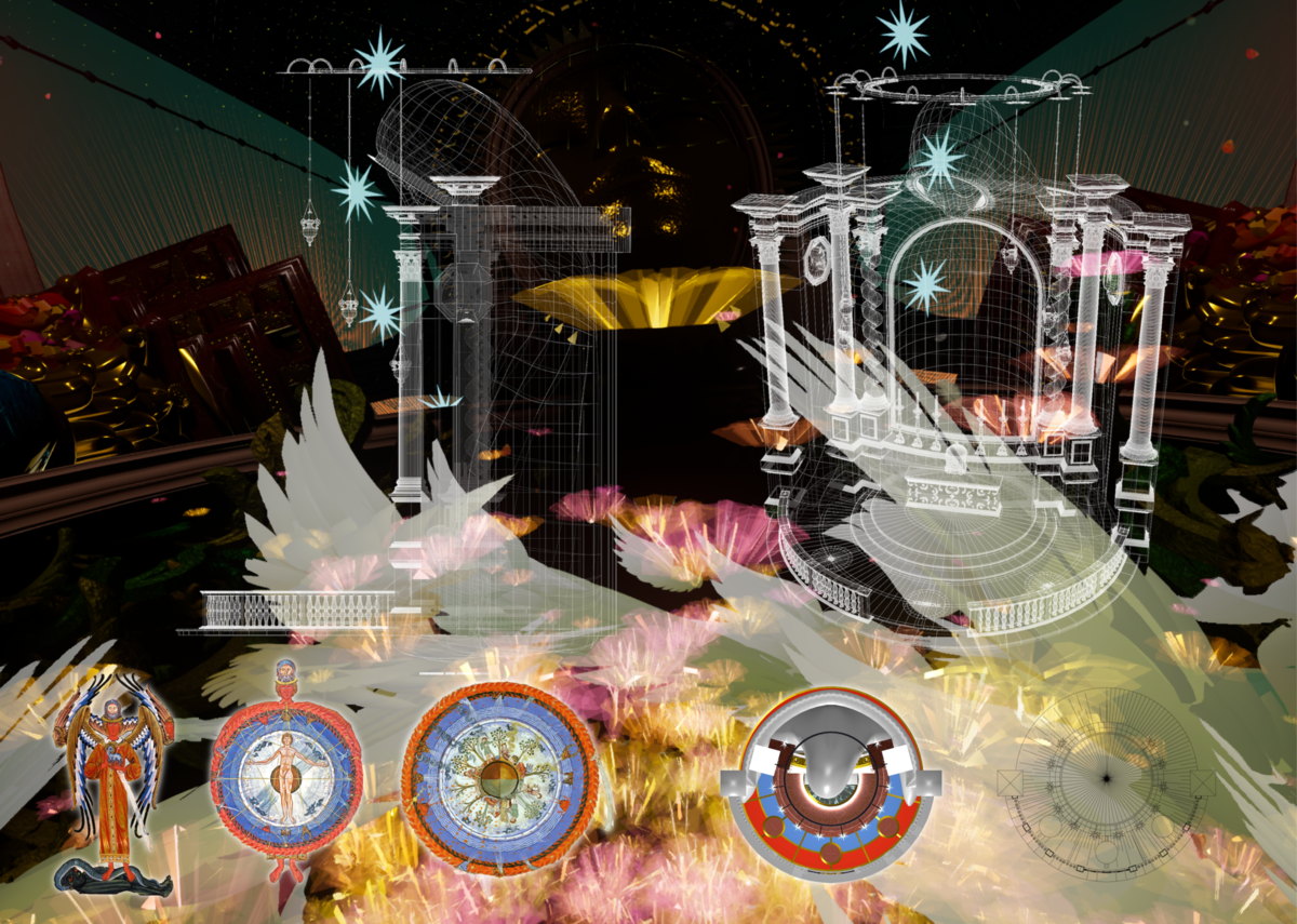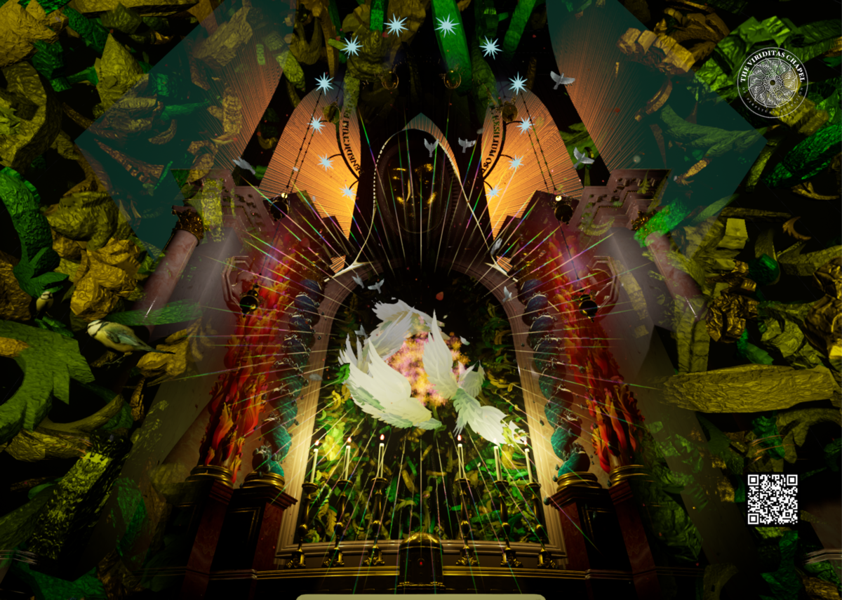 The Viriditas Chapel of Perpetual Adoration is a virtual reality inspired by visions and music of Saint Hildegard von Bingen, a 14th century abbess and Doctor of the Catholic Church. It is situated in the northern apsidal chapel of Cathedral-in-the-Clouds, an ongoing collection of digital dioramas for contemplation.